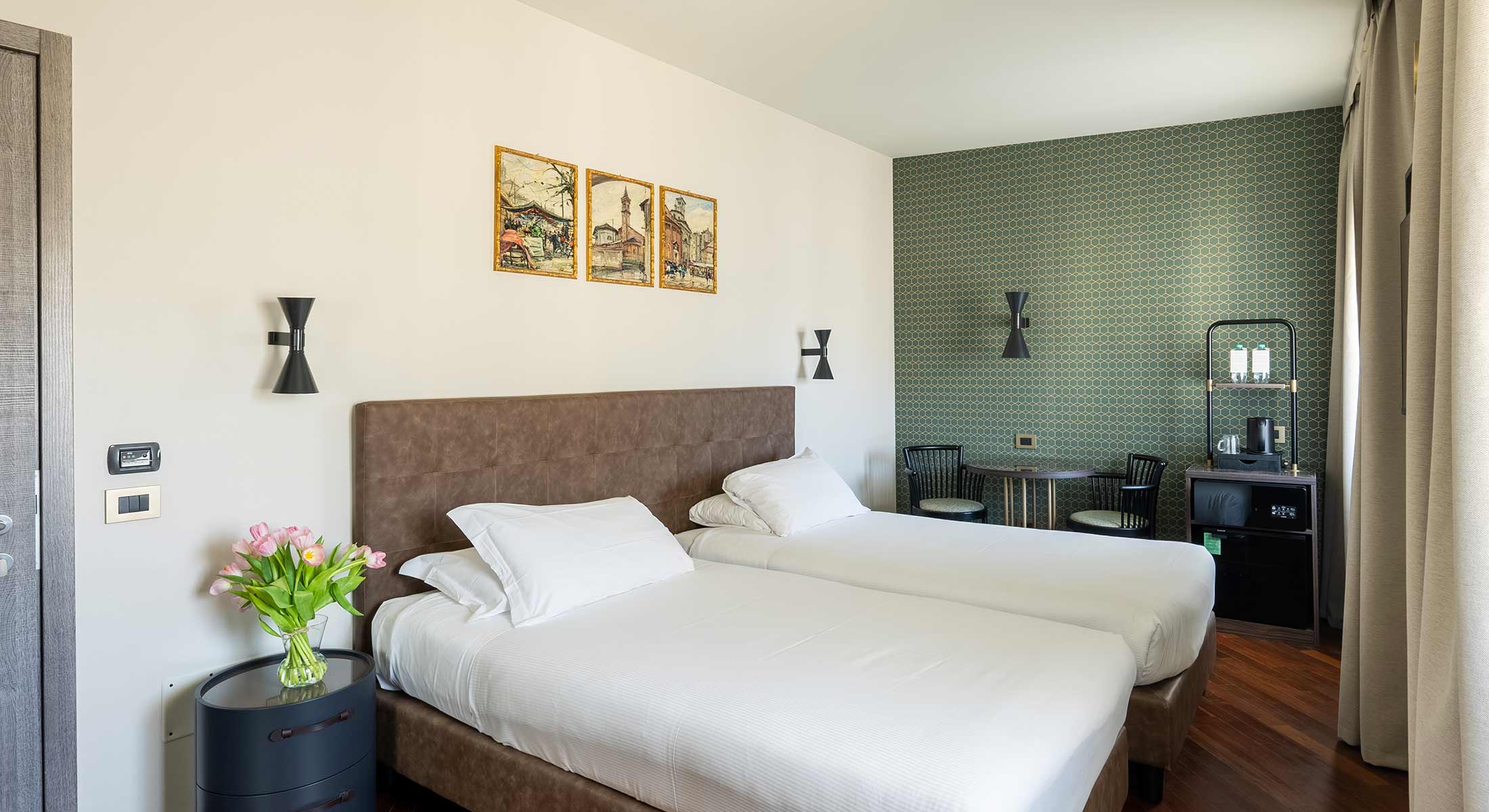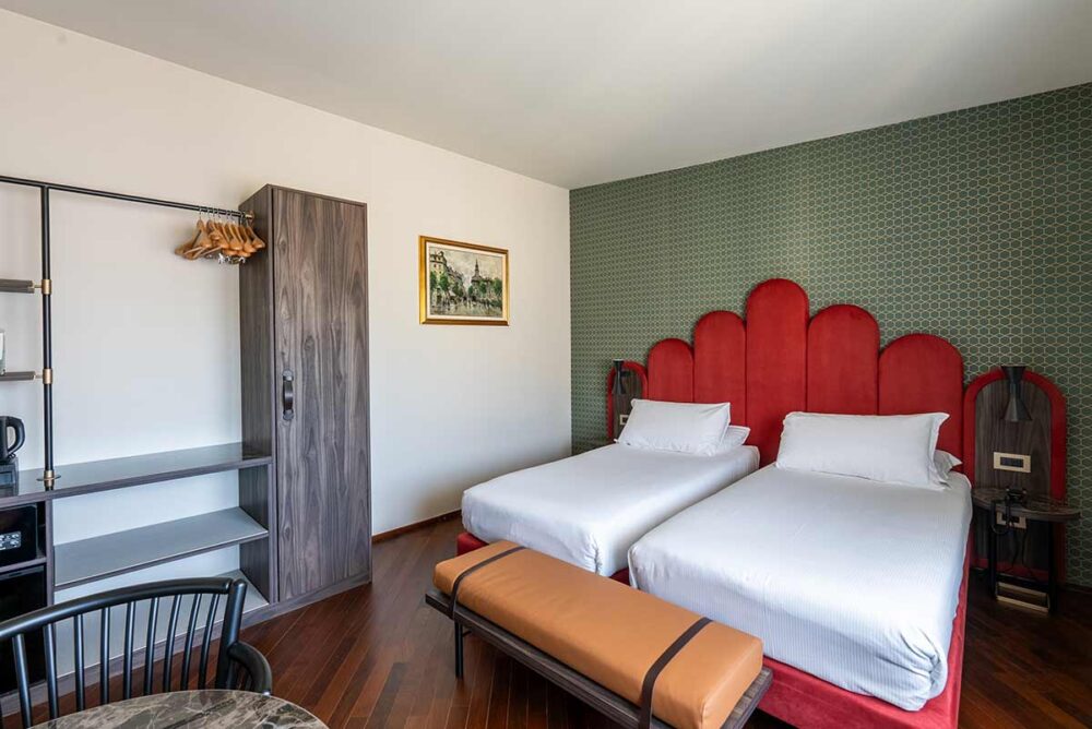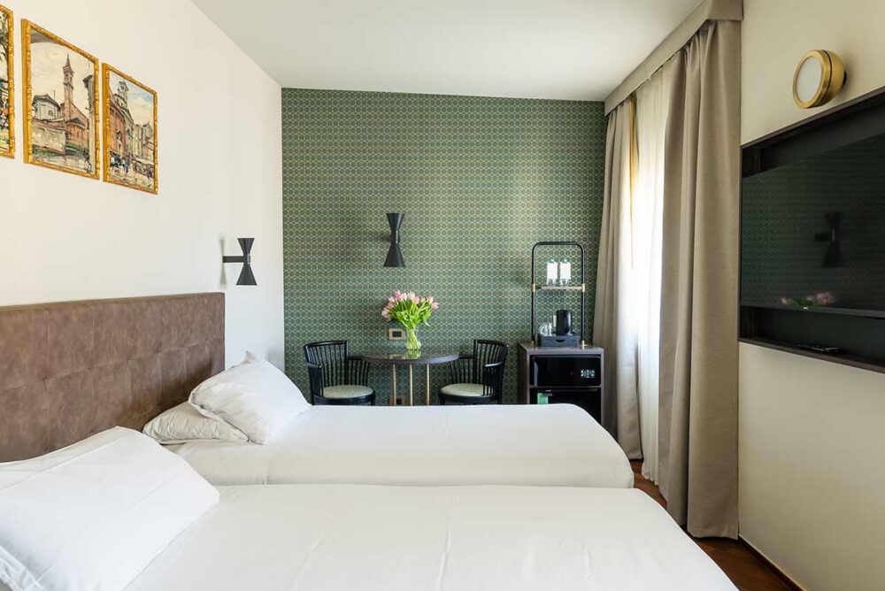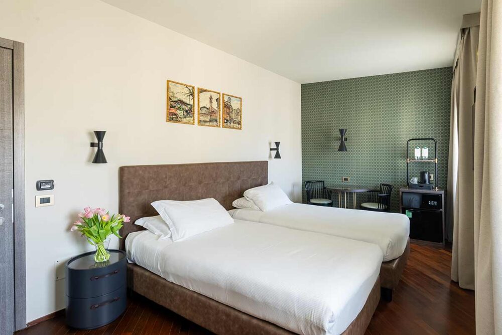Un ambiente luminoso e accogliente, pensato per chi viaggia in coppia e cerca comfort e tranquillità nel centro della città. Linee essenziali, materiali caldi e un’atmosfera equilibrata creano uno spazio dove rilassarsi viene naturale. Il letto matrimoniale è ampio e confortevole; su richiesta, la stanza può essere preparata con due letti singoli. Gli infissi di nuova generazione e le tende oscuranti assicurano silenzio e buio totale, per un riposo profondo anche nel cuore di Milano.