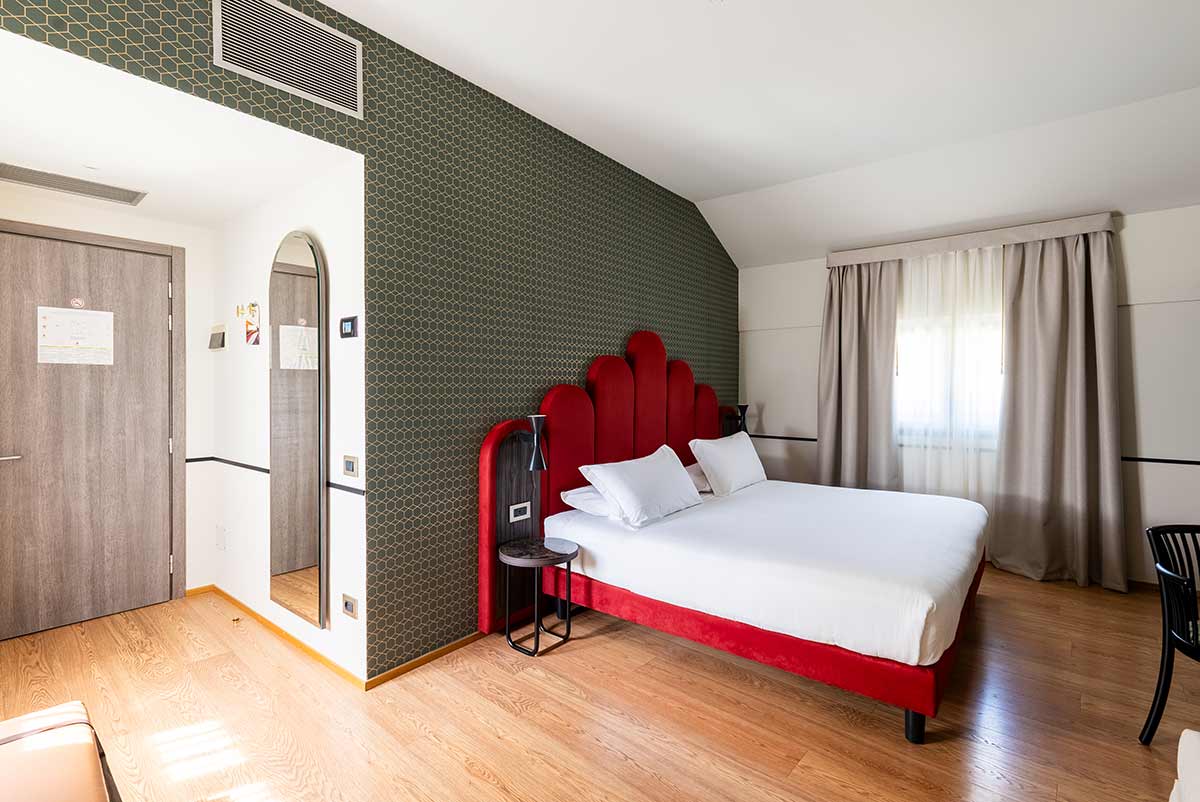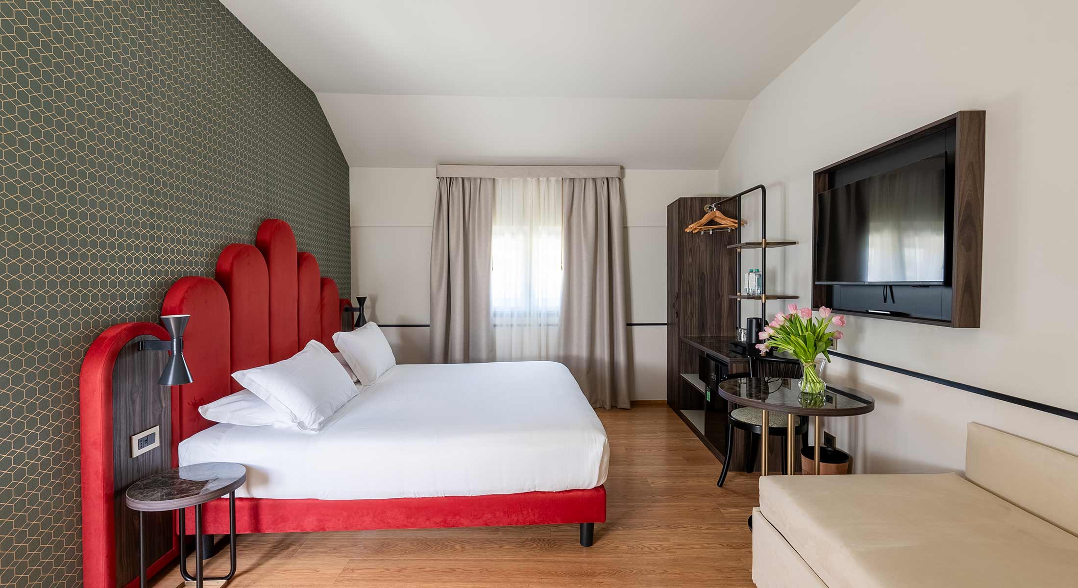 La Camera Superior è pensata per chi ama vivere la città con energia e ritrovare calma e qualità al rientro. Uno spazio più ampio, luminoso e accogliente, caratterizzato da arredi rinnovati e un’atmosfera calda che invita a rallentare. Il letto è ampio e confortevole, ideale per un riposo profondo. Gli infissi garantiscono un eccellente isolamento dal traffico cittadino, mentre le tende oscuranti assicurano buio e silenzio quando serve.